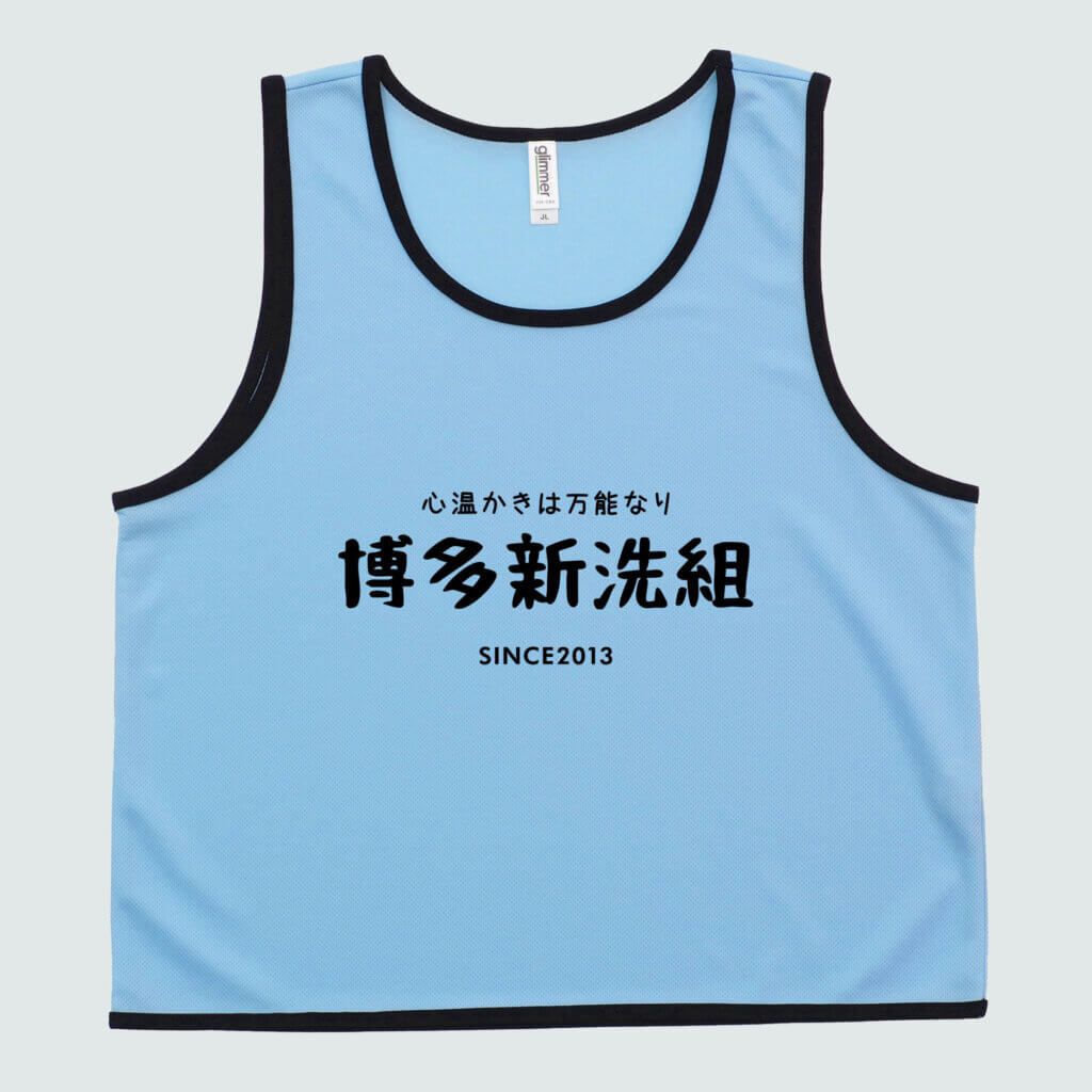 博多で清掃ボランティアを行なっている団体メンバーの方々が、活動の際に着用するためのビブスのオーダーをいただきました。